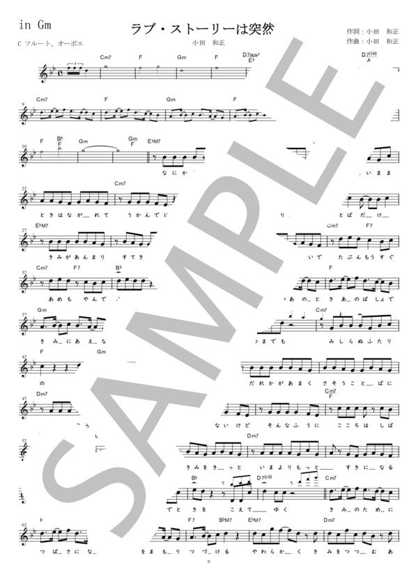 楽譜 ラブ ストーリーは突然に C調用 Ingm 小田 和正 メロディ 初 中級 Piascore 楽譜ストア