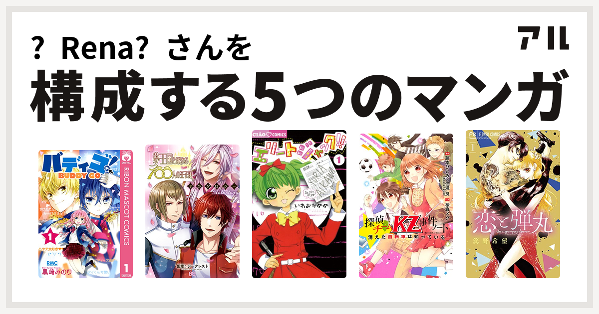 Rena さんを構成するマンガはバディゴ 夢王国と眠れる100人の王子様アンソロジー エリートジャック 探偵チームkz事件ノート 恋と弾丸 私を構成する5つのマンガ アル